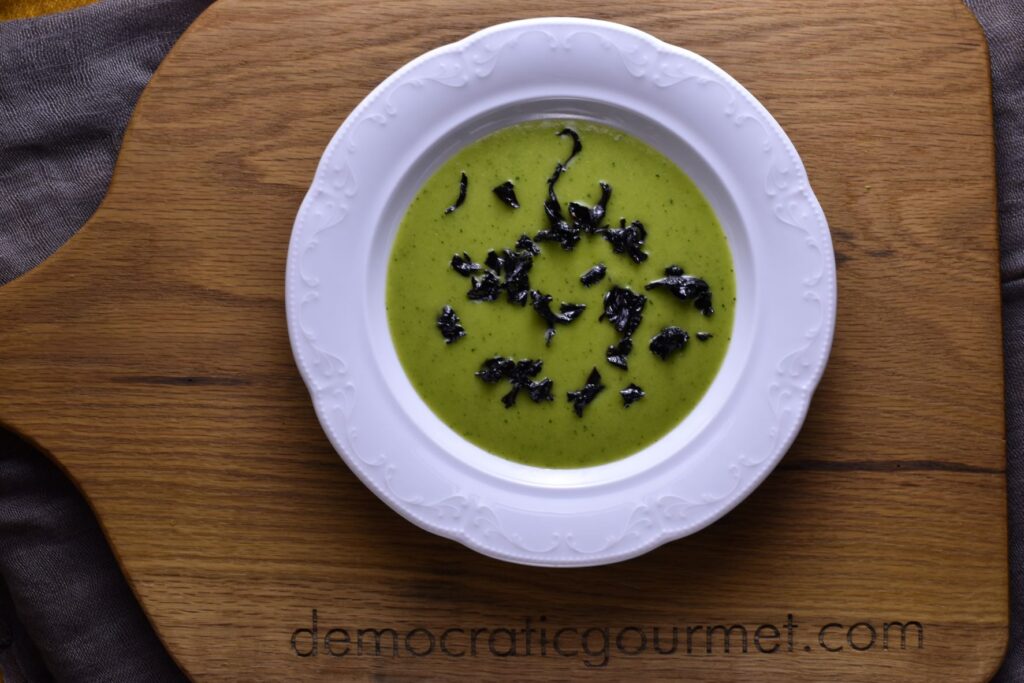 Καθαρίζουμε και κόβουμε σε κομμάτια το μπρόκολο και τα βάζουμε στον καυτό ζωμό να μαγειρευτούν. Όταν είναι εντελώς μαλακά (καθώς θέλουμε να τα μετατρέψουμε σε «κρέμα»), τα αφήνουμε να κρυώσουν για λίγο εκτός ζωμού και τα βάζουμε στο μπλέντερ.