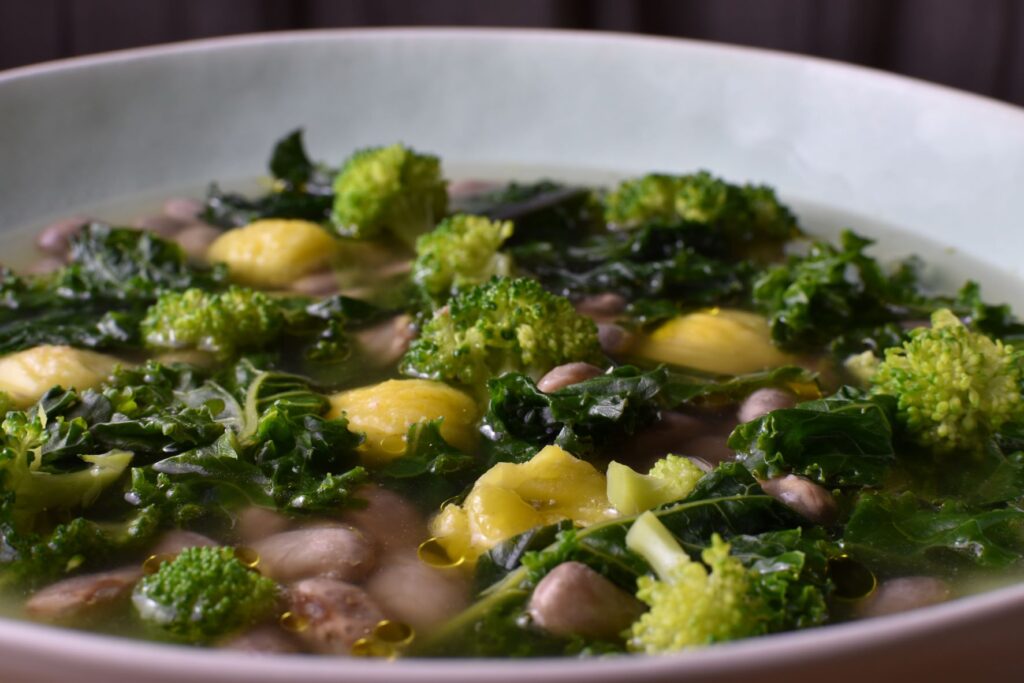 σούπα με φασόλια, κάστανα, κέιλ και μπρόκολο