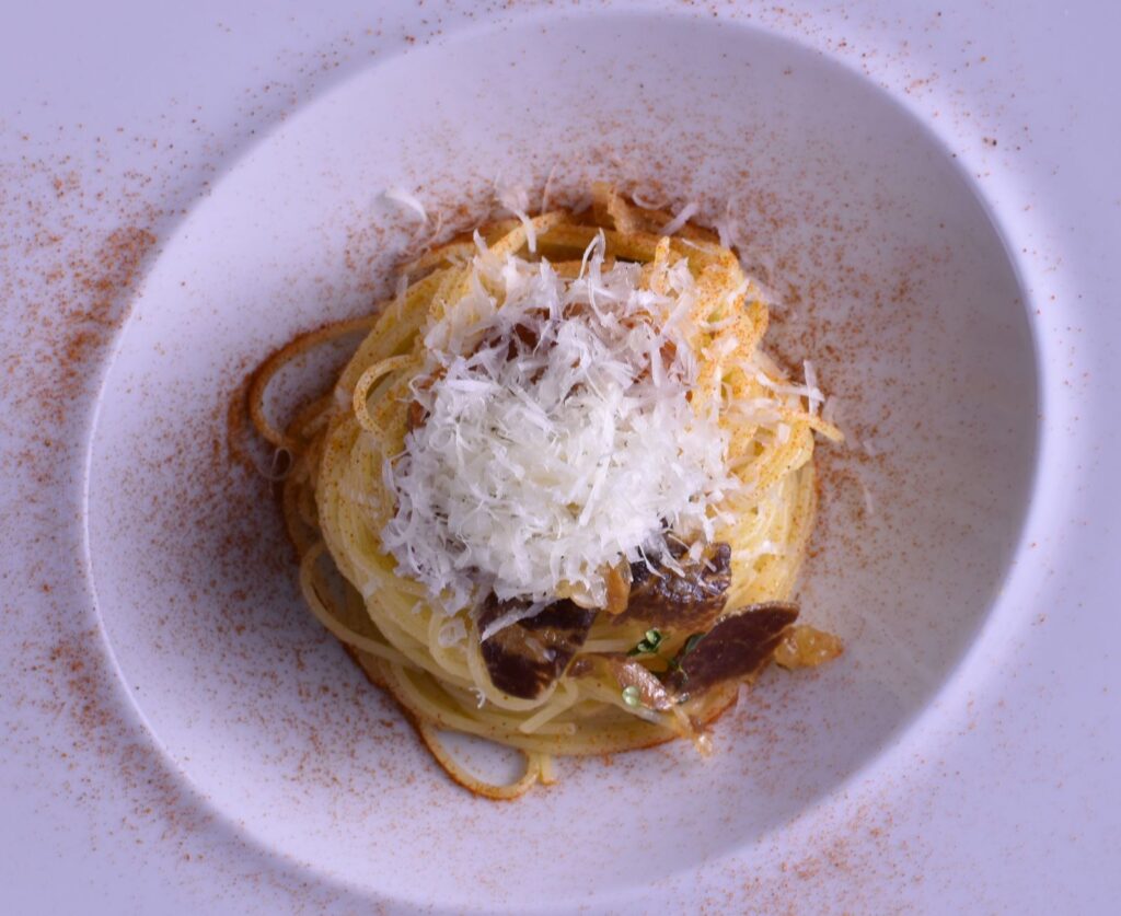 Meanwhile, we boil our vermicellini less than al dente, remembering to preserve a cup of boiled water, before straining the pasta.